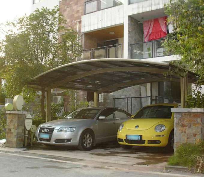 款式:单边型车棚、合抱型车棚、蝴蝶型车棚