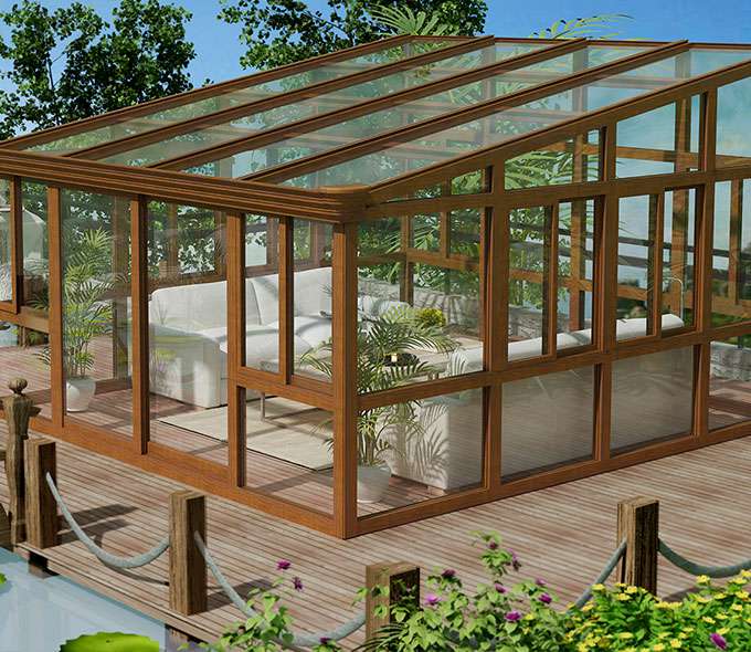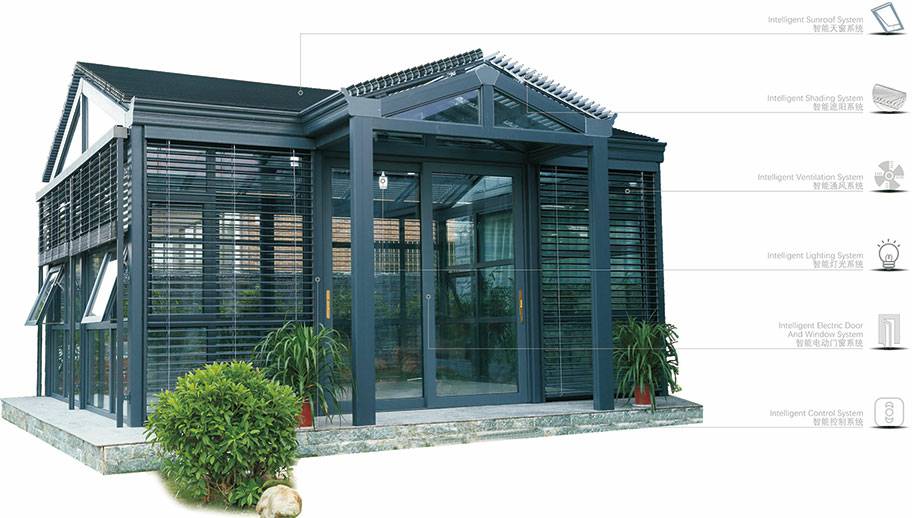 星空官方网站-星空(中国)V9阳光房采用高强度铝合金为原材料,经酸洗铬化、电泳或静电喷涂,木纹转印处理后,经过精密设计造型,配合Low-E玻璃封闭,别具一格。隔热保温,防止紫外线,美观大方,可打造休闲或办公空间,简洁、上乘、实用,为建筑提升整体档次。